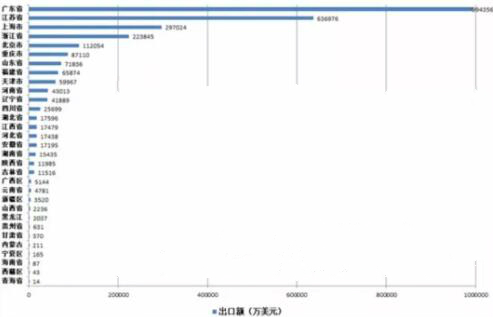 3、2017年1一8月各地仪器仪表行业出口总额概况