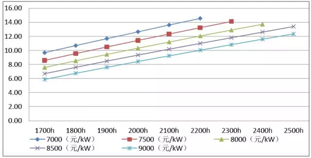 当满发小时数达到2000小时,则单位千瓦静态投资不超过9000元/kW即能保障全部投资内部收益率不低于8%。